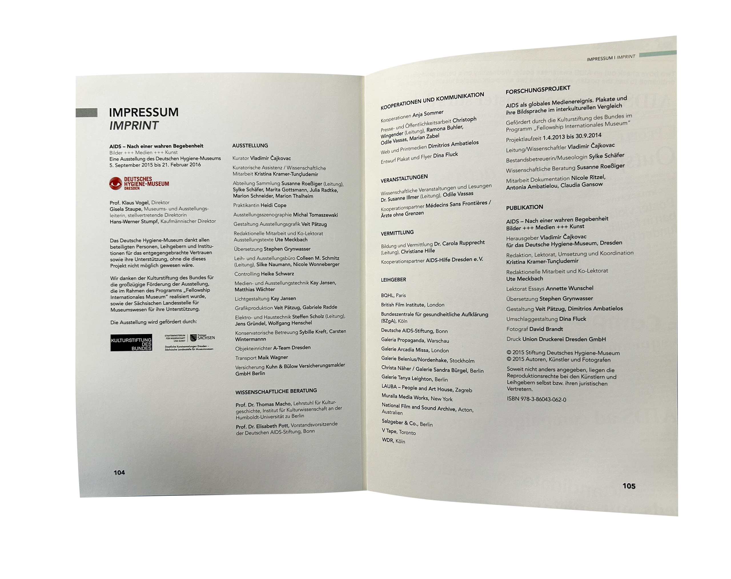 Čajkovac. V., AIDS – Nach einer wahren Begebenheit (AIDS – Based on a True Story), exhibition catalogue, Deutsches Hygiene-Museum, Dresden, 2015, pp 49